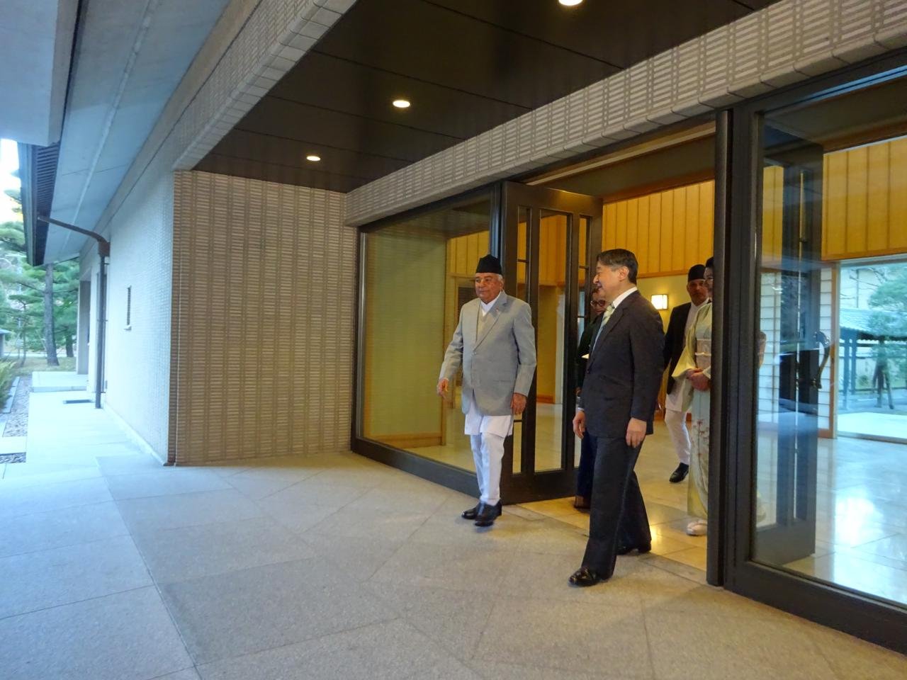जापान सरकारको निमन्त्रणामा राष्ट्रपति पौडेल प्रथम महिला सबिता पौडेलसहित नेपाली प्रतिनिधिमण्डलको नेतृत्व गर्दै नेपाल र जापान बीचको कूटनीतिक सम्बन्ध स्थापना भएको ७० औँ वर्षगाँठका अवसरमा हुने विशेष समारोहमा सहभागी हुन सोमबार यहाँ आइपुगेका हुन् । सोही क्रममा राष्ट्रपति पौडेल र सम्राट नारुहितोबीच भेटवार्ता भएको हो ।