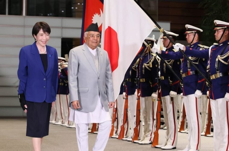 काठमाडौँ । राष्ट्रपति रामचन्द्र पौडेललाई आज जापान सरकारका तर्फबाट ‘गार्ड अफ अनर’ प्रदान गरिएको छ । जापानको चारदिने भ्रमणमा रहेका राष्ट्रपति पौडेललाई जापान सरकारले ‘गार्ड अफ अनर’ प्रदान गरेको हो ।
