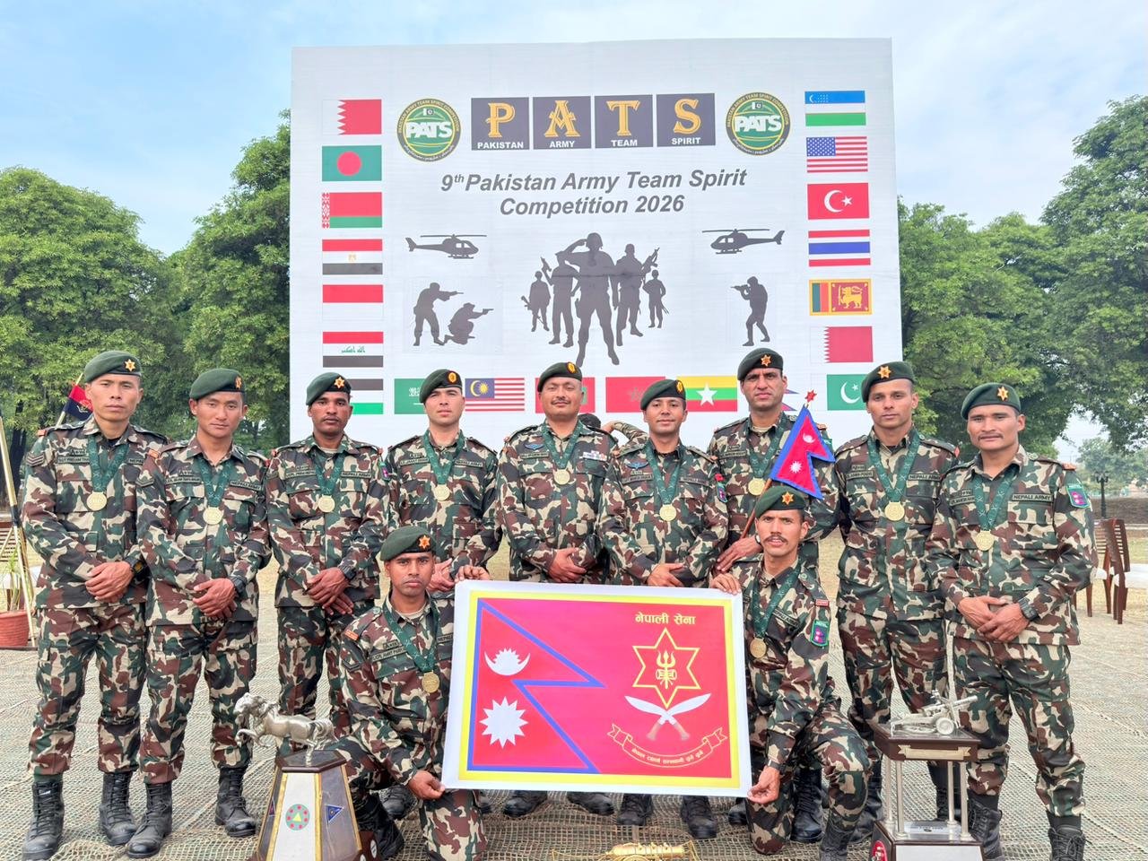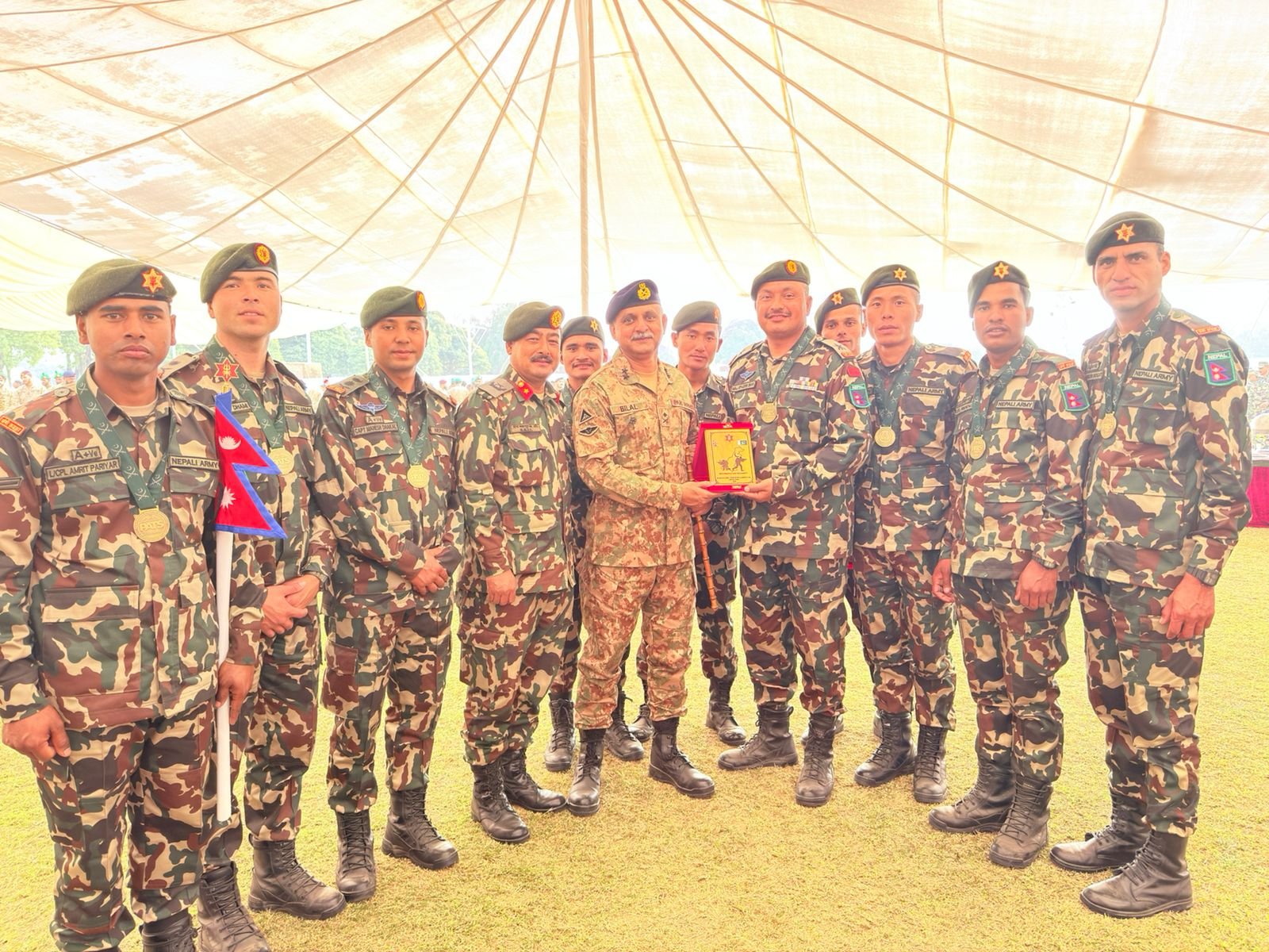 यही माघ २२ गतेदेखि २४ गतेसम्म पाकिस्तानको पञ्जाव प्रान्तको खरियाँस्थित ‘नेशनल काउन्टर टेराेरिजम सेन्टर’मा आयोजित प्रतियोगितामा सर्वोत्कष्ट अङ्कसहित स्वर्ण पदक जितेको नेपाली सेनाले जनाएको छ।