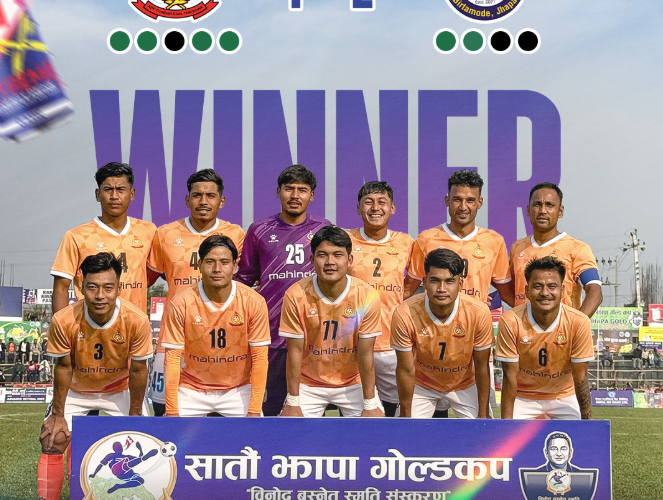 एपिएफले आयोजक झापा–११ लाई घरेलु मैदानमा टाइब्रेकरमा ४–२ गोलअन्तरले पराजित गर्दै फाइनलयात्रा तय गरेको हो । एक गोलले पछि परेको अवस्था उल्ट्याउँदै एपिएफले जित हासिल गरेको छ । यो जितसँगै एपिएफले सात लाख ५० हजार सुरक्षित गरेको छ ।
