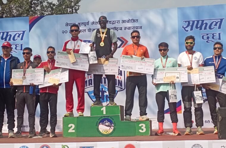 कास्की । पोखरामा शनिबार सम्पन्न भएको २०औँ संस्करणको पोखरा अन्तरराष्ट्रिय म्याराथनको उपाधि केन्याली धावक जुलियस मुरिउकी वाहोमेले जितेका छन् । नेपाल भूतपूर्व खेलाडी मञ्च नेपालको आयोजनामा पोखरा रङ्गशालाबाट सुरु भएको ४२.१९५ किलोमिटरको म्याराथनमा धावक वाहोमेले निर्धारित दूरी २ घण्टा २३ मिनेट ३९ सेकेन्डमा पार गर्दै च्याम्पियन बने । उपाधि विजेता जुलियसले रु चार लाखसहित मेडल पुरस्कार पाए ।
