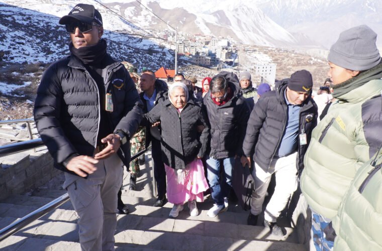 मुस्ताङ । प्रधानमन्त्री सुशीला कार्कीले मुस्ताङको वारागुङ मुक्तिक्षेत्र–१ स्थित पवित्र मुक्तिनाथ मन्दिरको दर्शन गरेकी छिन् । नेपाली सेनाको हेलिकोप्टरबाट शुक्रबार यहाँ आएकी प्रधानमन्त्री कार्कीले मुक्तिनाथस्थित १०८ धाराको जलसेचन गरी मुक्तिनाथ मन्दिरमा दर्शन गरेकी हुन् ।