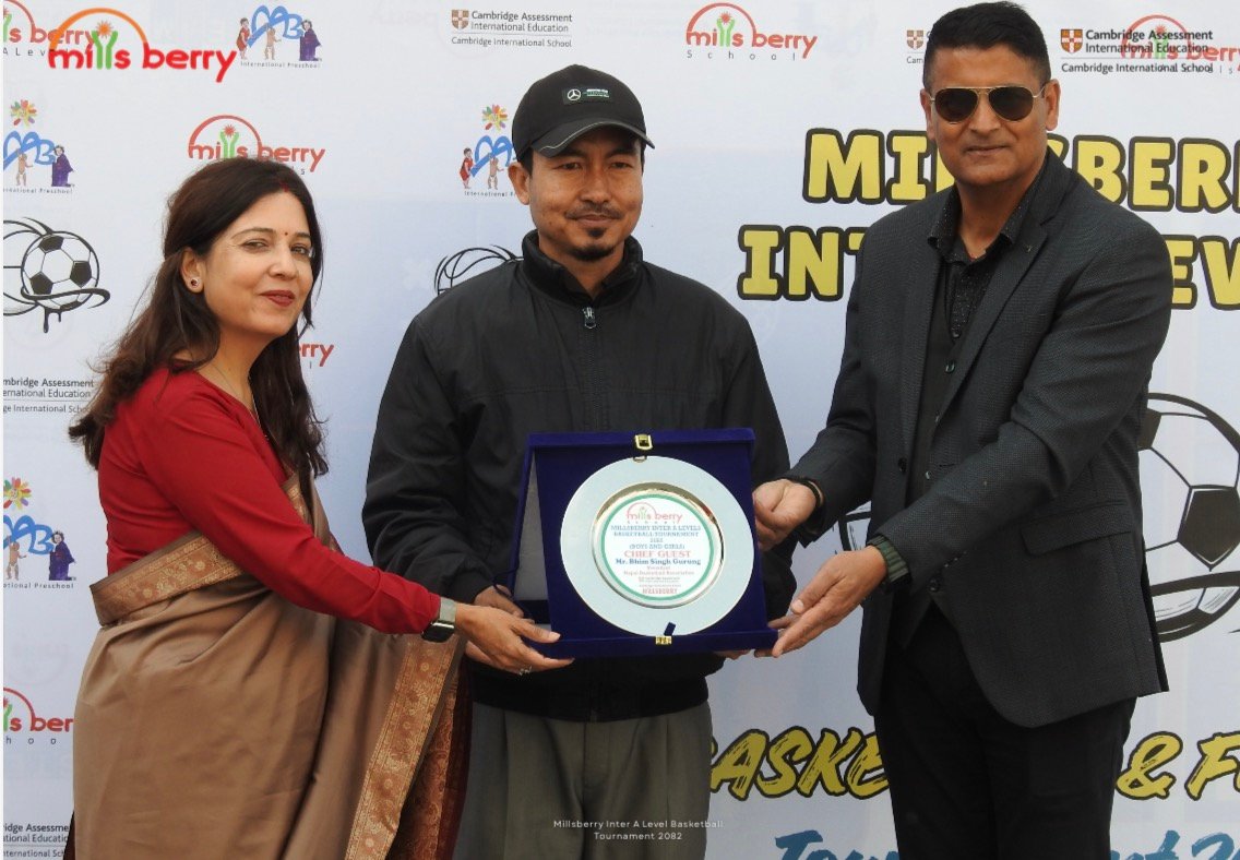 त्यसैगरी मिल्सबेरीका अध्यक्ष सुशील दाहाल तथा कार्यकारी निर्देशक प्रिन्सिपल मोना दाहाल विशेष अतिथिका रूपमा उपस्थित थिए । उनीहरुले विजेता तथा सहभागी सम्पूर्ण टिमलाई बधाई दिँदै विद्यालयस्तरीय खेलकुदले विद्यार्थीहरूमा नेतृत्व क्षमता, आत्मविश्वास, अनुशासन तथा राष्ट्रिय खेल प्रतिभा विकासमा महत्वपूर्ण भूमिका खेल्ने धारणा व्यक्त गरे ।
