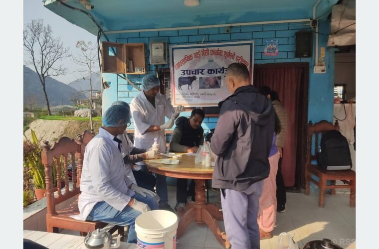 पर्वत। भेटेरिनरी अस्पताल तथा पशु सेवा कार्यालयले किसानको गोठमै पुगेर गाईभैँसीमा लाग्ने रोग थुनेलो परीक्षण गर्न थालेको छ ।