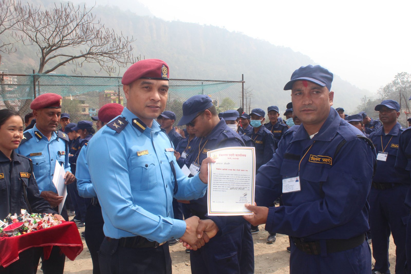 निर्वाचन सुरक्षाका लागि भर्ना गरिएका निर्वाचन प्रहरीको ४० दिनको सेवा पूरा भएपछि बिहीबार बिदाइ गरिएको हो । बिदाइ कार्यक्रममा निर्वाचन प्रहरीलाई धन्यवाद पत्रसहित सम्मान गरिएको थियो । नेपाल प्रहरीले १ लाख ३३ हजार ९८० जना निर्वाचन प्रहरी भर्ना गरेका थियो ।