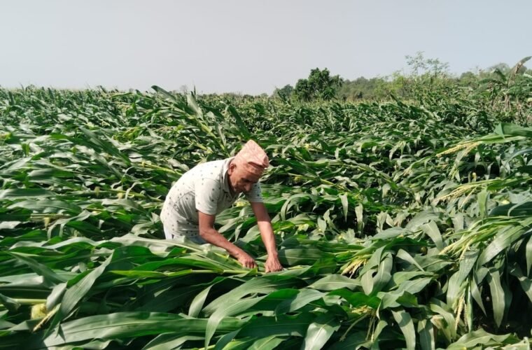 सोमबार साँझ आएको भीषण हावाहुरीका कारण चन्द्रपुर नगरपालिकामा अत्यधिक क्षति पुगेको छ । विशेष गरी चन्द्रपुर–३ मा लगाइएको करिब रु डेढ करोड बराबरको केरा खेती पूर्ण रूपमा नष्ट हुँदा किसान आर्थिक मारमा परेका छन् ।
