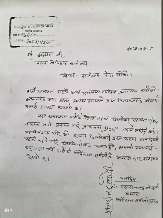 राप्रपाको निर्देशन समितिको अध्यक्षबाट लोहनीले दिए राजीनामा
