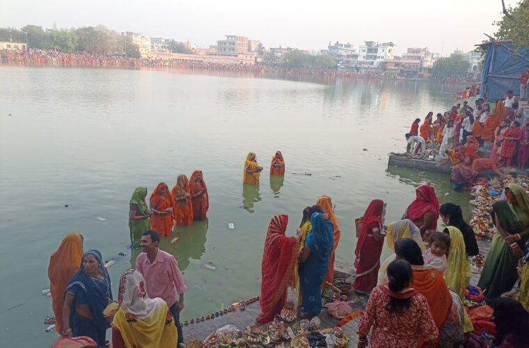 नेपाल र भारतका मिथिला क्षेत्रमा गत आइतबार चतुर्थी तिथिदेखि धार्मिक विधिपूर्वक सुरु भएको चारदिने चैती छठ उत्सवको आज मुख्य दिन षष्ठी तिथिको साँझ विभिन्न जलाशयमा पसेर व्रतालुले अस्ताउँदो सूर्यलाई अर्घ दिँदै चैती छठ पर्व मनाइँदै छ ।