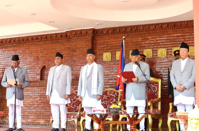 शपथ समारोहमा राष्ट्रपतिसँगै उपराष्ट्रपति रामसाहायप्रसाद यादव, प्रधानन्यायाधीश प्रकाशमानसिंह राउत, राष्ट्रिय सभाका अध्यक्ष नारायणप्रसाद दाहाललगायत संवैधानिक निकायका प्रमुख, कूटनीतिक नियोगका प्रमुख र उच्च पदस्थ कर्मचारीको उपस्थिति थियो ।