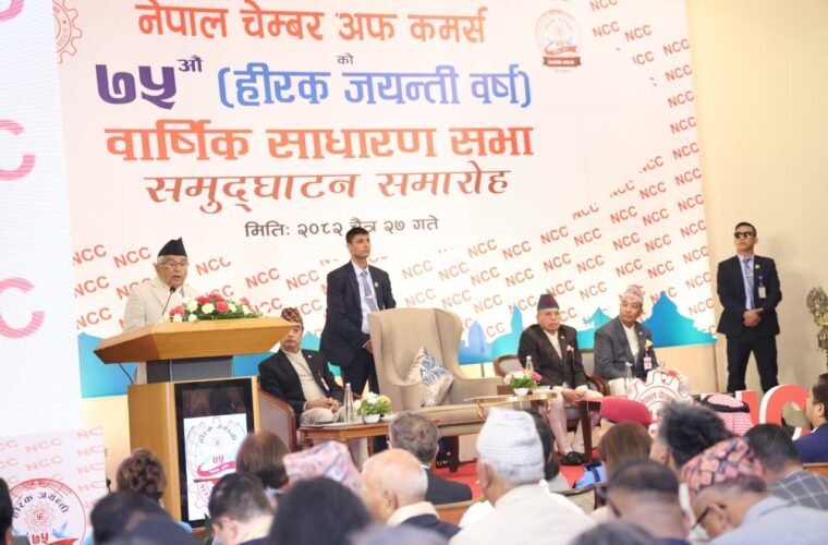 राष्ट्रपति पौडेलले नेपाल चेम्बर अफ कमर्सको ७५ औँ वार्षिक साधारण सभा तथा हीरक जयन्ती समारोहलाई शुक्रबार सम्बोधन गर्दै उनले यस्तो बताएका हुन् ।