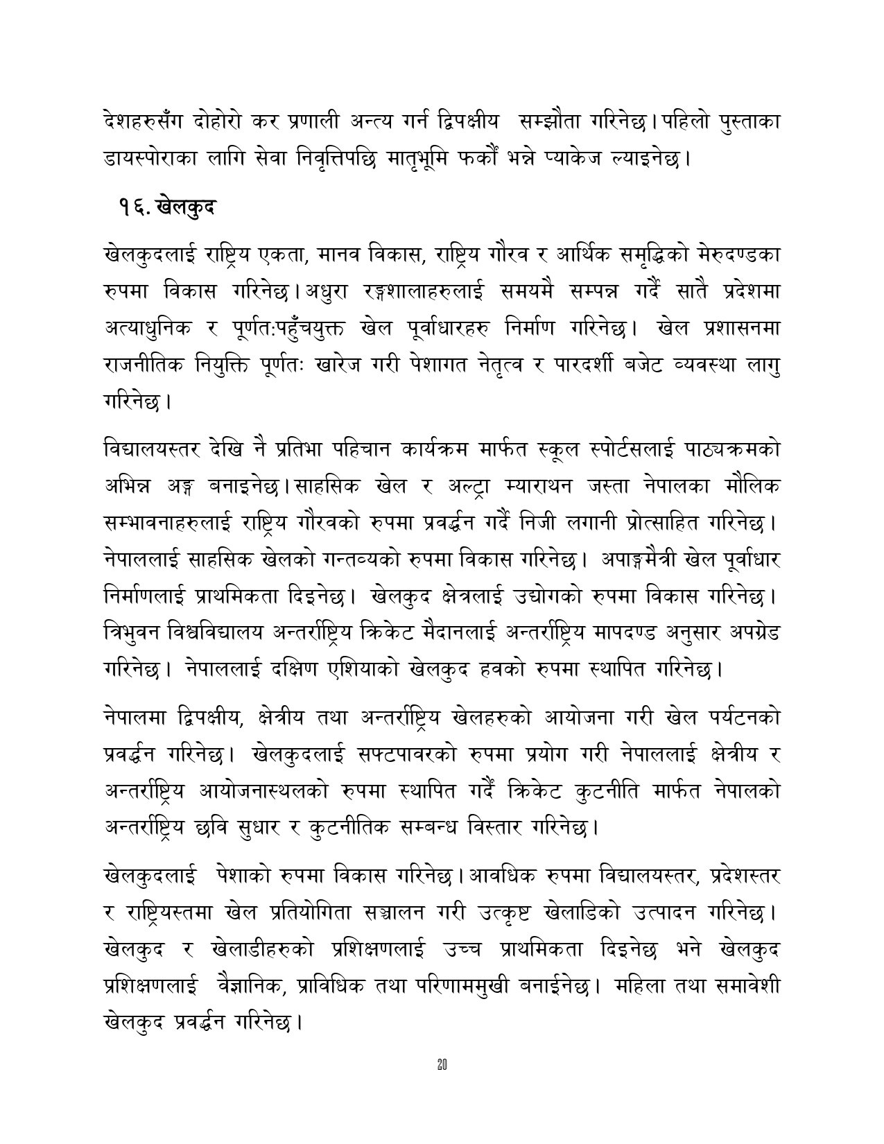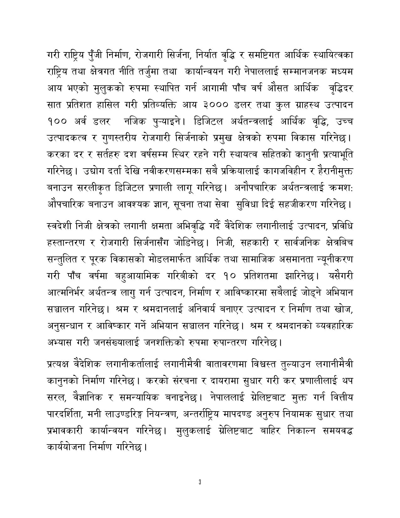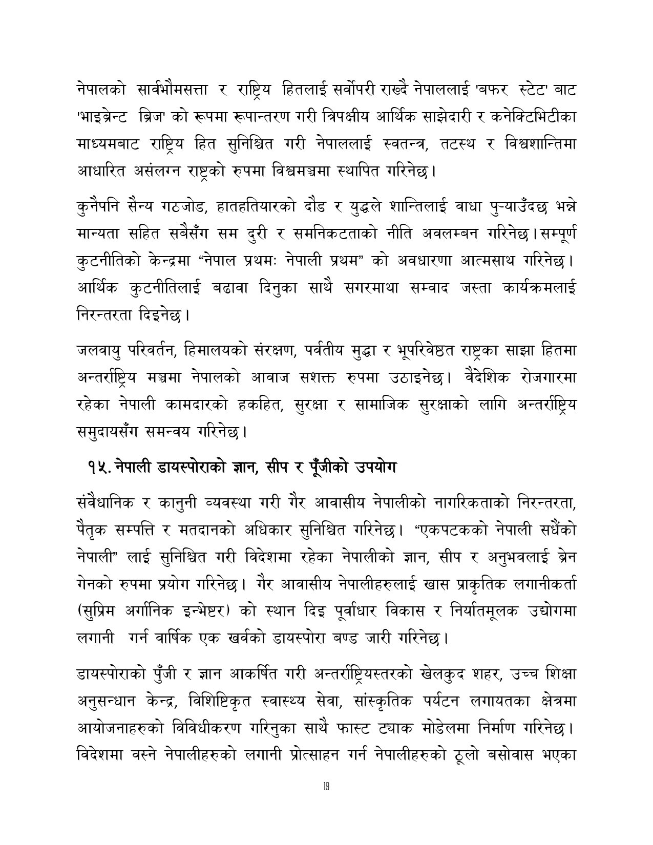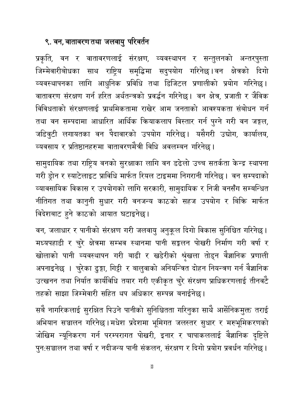 त्यसैगरी रोजगारी र समृद्धि, शिक्षा र स्वास्थ्य, वन वातावरण र जलवायु परिवर्तन, सुशासन र भ्रष्टाचार नियन्त्रण, प्रशासनिक सुधार र सेवा प्रवाह, विद्युतीय सुशासन र प्रविधिको क्षेत्रमा अवधारणापत्र माग भएको छ ।
