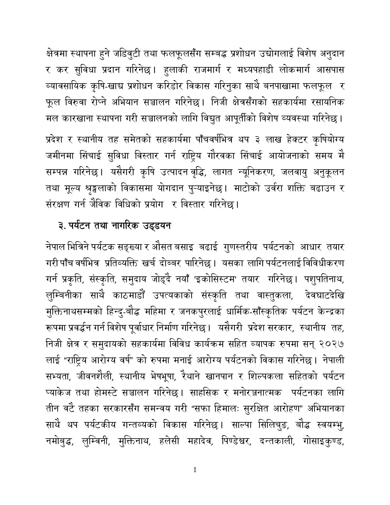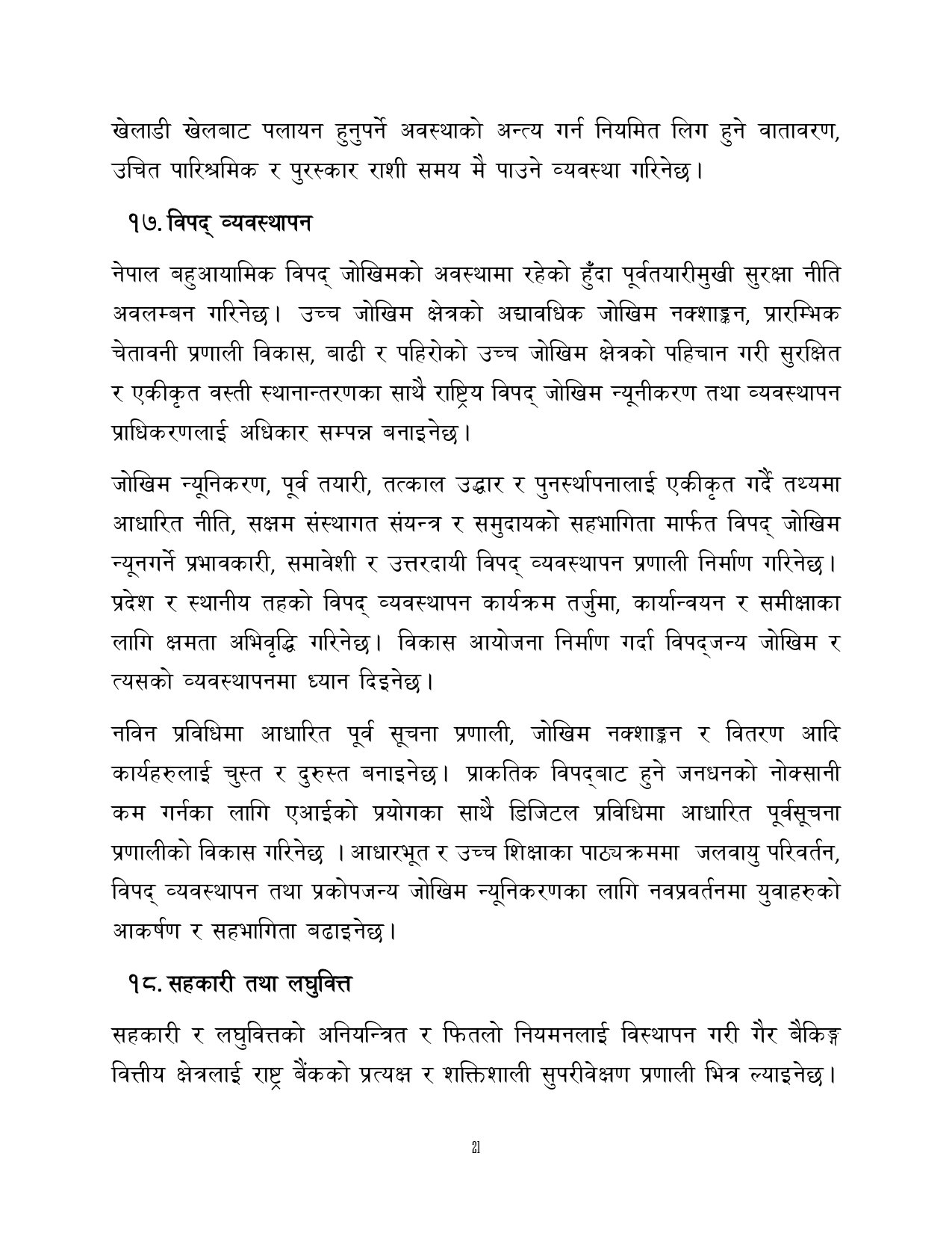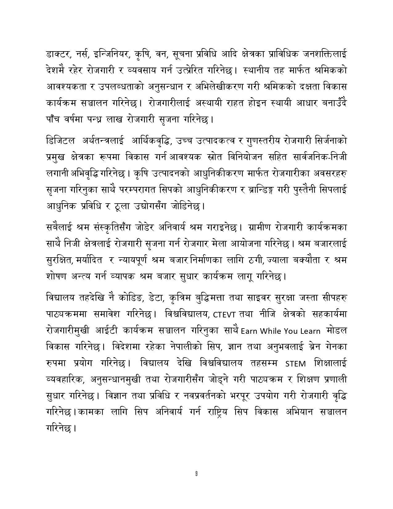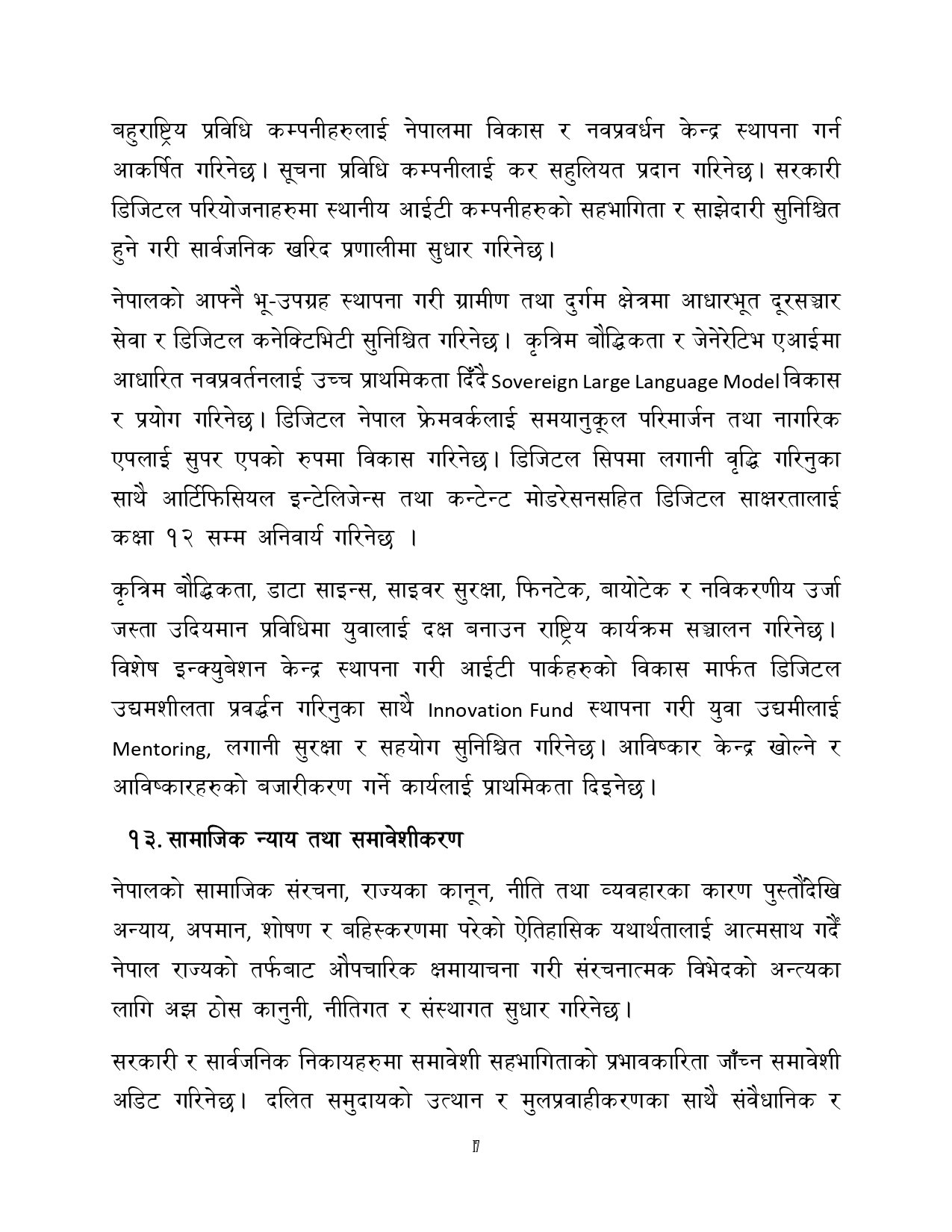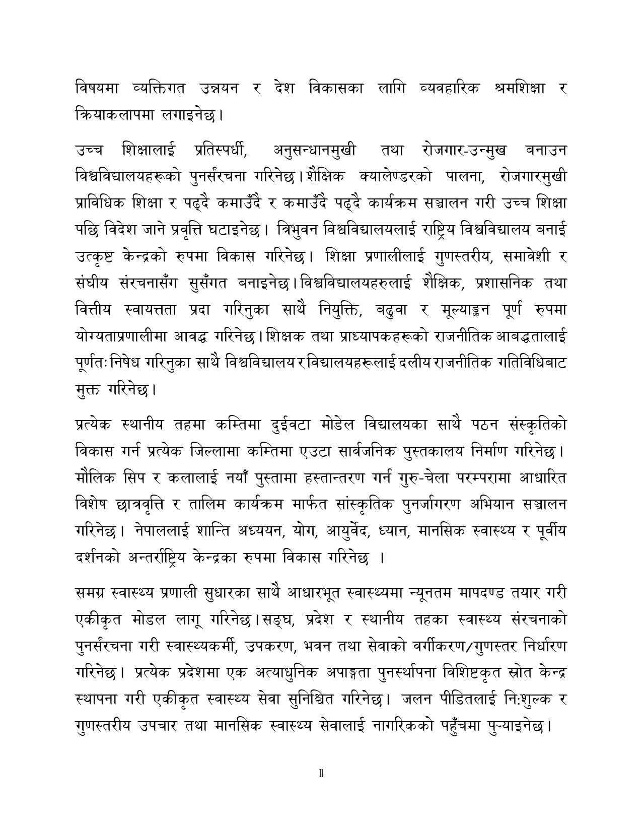 त्यसैगरी रोजगारी र समृद्धि, शिक्षा र स्वास्थ्य, वन वातावरण र जलवायु परिवर्तन, सुशासन र भ्रष्टाचार नियन्त्रण, प्रशासनिक सुधार र सेवा प्रवाह, विद्युतीय सुशासन र प्रविधिको क्षेत्रमा अवधारणापत्र माग भएको छ ।