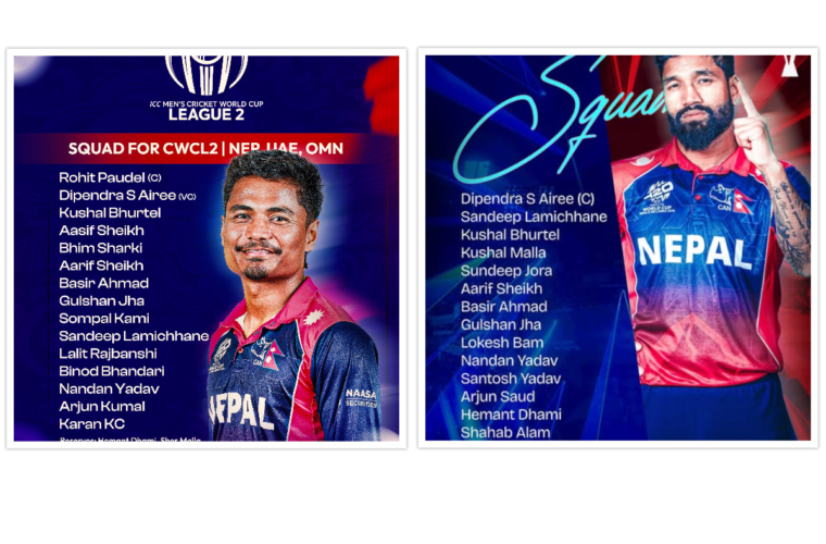 नेपाल क्रिकेट सङ्घ (क्यान) ले शुक्रबार टी–२० शृङ्खलाका लागि दीपेन्द्रसिंह ऐरी र लिग–टु शृङ्खलाका लागि रोहित पौडेलको कप्तानीमा १५ सदस्यीय टोली घोषणा गरेको हो । अब नेपालको टी–२० टोलीको कप्तानी दीपेन्द्र र एकदिवसीय टोलीको कप्तानी रोहितले गर्ने क्यानले जनाएको छ ।