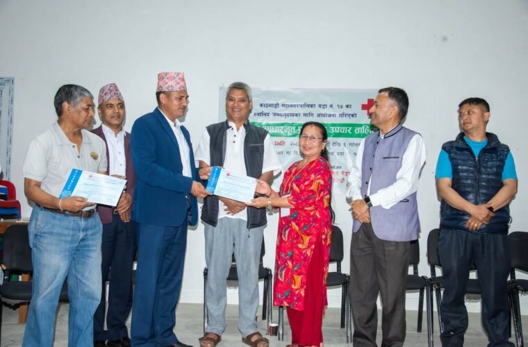 काठमाडौँ । काठमाडौँ महानगरपालिकाले सबै वडामा प्राथमिक उपचार तालिम सञ्चालन गरेर ८ सय जना प्राथमिक उपचारकर्ता जनशक्ति तयार गरिरहेको छ । यसका लागि नेपाल रेडक्रस सोसाइटी काठमाडौँ शाखासँगको सहकार्यमा वडास्तरीय तालिम सञ्चालन भइरहेका छन् ।