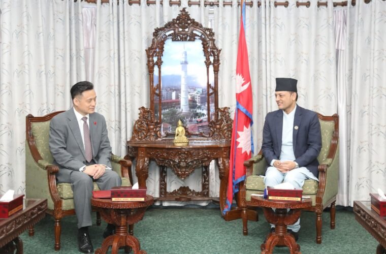 काठमाडौँ । प्रतिनिधिसभाका सभामुख डोलप्रसाद (डिपी) अर्यालसँग नेपालका लागि चिनियाँ राजदूत चाङ माओमिङले शिष्टाचार भेटवार्ता गर्नुभएको छ । आज भएको भेटमा द्विपक्षीय सम्बन्ध, संसदीय सहकार्य, विकास साझेदारी र क्षेत्रीय तथा अन्तरराष्ट्रिय विषयमा विचार आदानप्रदान भएको थियो ।