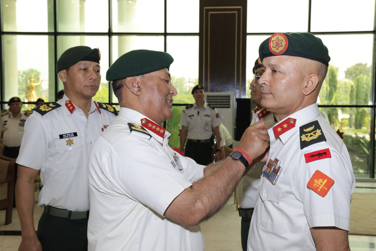 प्रधानसेनापति अशोकराज सिग्देलले जङ्गी अड्डामा बिहीबार आयोजित समारोहमा उनीहरुलाई उपरथी दर्जाको दज्र्यानी चिन्ह प्रदान गरेको सैनिक जनसम्पर्क तथा सूचना निर्देशनालयले जनाएको छ । कार्यक्रममा सेनाका बलाधिकृत, रथीवृन्द, अधिकृतलगायत पदोन्नति भएका रथीवृन्दहरुको परिवारजनको उपस्थिति थियो ।