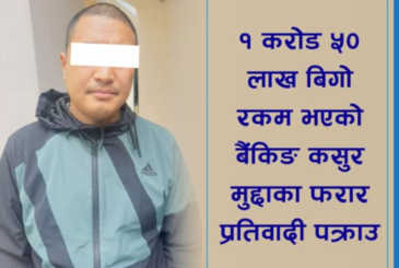 १ करोड ५० लाख बिगो भएको बैंकिङ कसुर मुद्दाका फरार प्रतिवादी पक्राउ ३० जेठ, २०८२नेपाल समाजअपराध, मुख्य समाचार, समाज