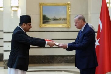राजदूत अधिकारीद्वारा टर्कीका राष्ट्रपतिसमक्ष ओहोदाको प्रमाणपत्र प्रस्तुत १४ बैशाख, २०८१नेपाल समाजराजनीति, प्रवास