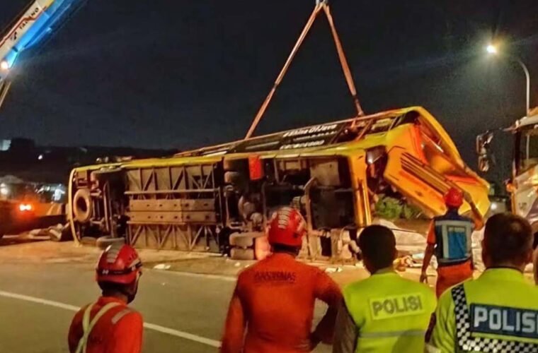 According to the Semarang Search and Rescue Office, the passenger bus was traveling at high speed when the driver lost control, causing the vehicle to crash into a barrier and overturn.