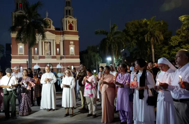 About 100 people gathered outside the High Commission of India in London on Sunday, with many laying candles in memory of those who died in the crash.