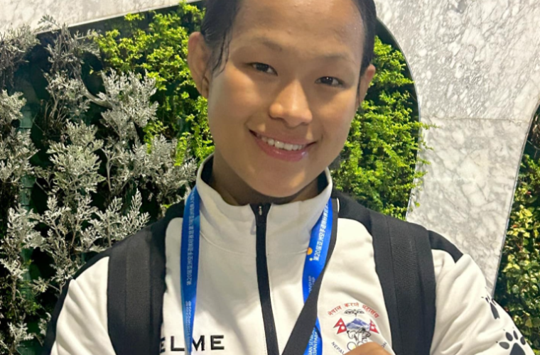 In the final match organized by the Asian Karate Federation at Hangzhou of China on Sunday, Gurung defeated Vietnam’s player Nguyen Thi Ngoan by 6-0 to secure the silver medal.