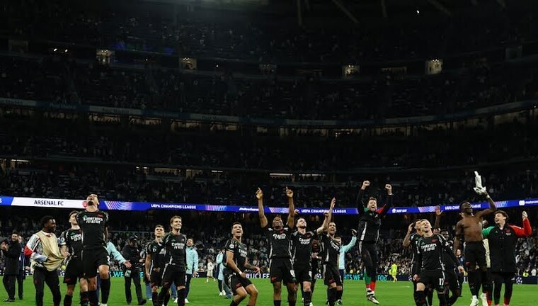 Madrid, April 17: English club Arsenal have advanced to the UEFA Champions League semi-finals for the first time in 16 years after a stunning victory over defending champions Real Madrid.