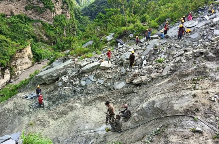 Myagdi, July 25: Landslide prevention works have begun near the Baisari Andheri rivulet along the border of Raghuganga rural municipality-2 and 3 in Myagdi district after the Beni-Jomsom-Korala road section of the national pride project, Kaligandaki Corridor, was obstructed daily.