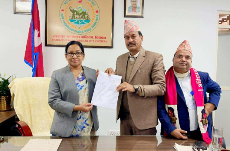 Chitwan, Jan 20: Mayor of Bharatpur Metropolis Renu Dahal resigned from her post today. She submitted her resignation to Deputy Mayor Chitrasen Adhikari.