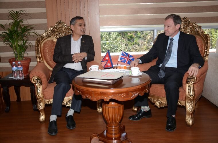 Kathmandu, Nov 14: The British Ambassador to Nepal, Rob Fenn, has paid a courtesy call on Minister for Home Affairs Om Prakash Aryal at his office in Singha Durbar today.