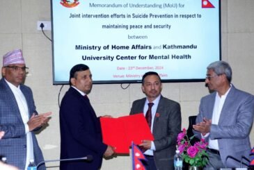 Ministry of Home Affairs and KU sign MoU on study and research on suicide prevention Monday, December 23, 2024Nepal SamajMain News, National