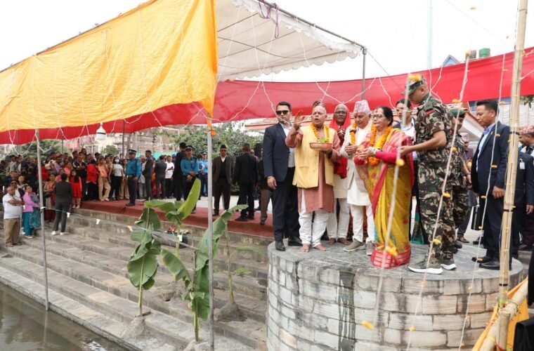 Kathmandu, Oct 27: President Ramchandra Paudel today visited Guheshori, Pashupatinath area and offered arghya (cord and holy water) to the Sun from the bank of the Bagmati River. On the occasion, he reached the area specially prepared for the Chhath Puja celebrations on the riverbank and paid homage to the Sun God and his consort, Chhathi Maiya.