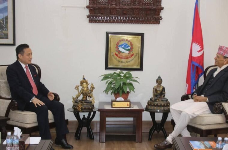 Kathmandu, Feb 25: Chinese Ambassador to Nepal, Zhang Maoming, today held a courtesy meeting with Minister for Foreign Affairs Bala Nanda Sharma.