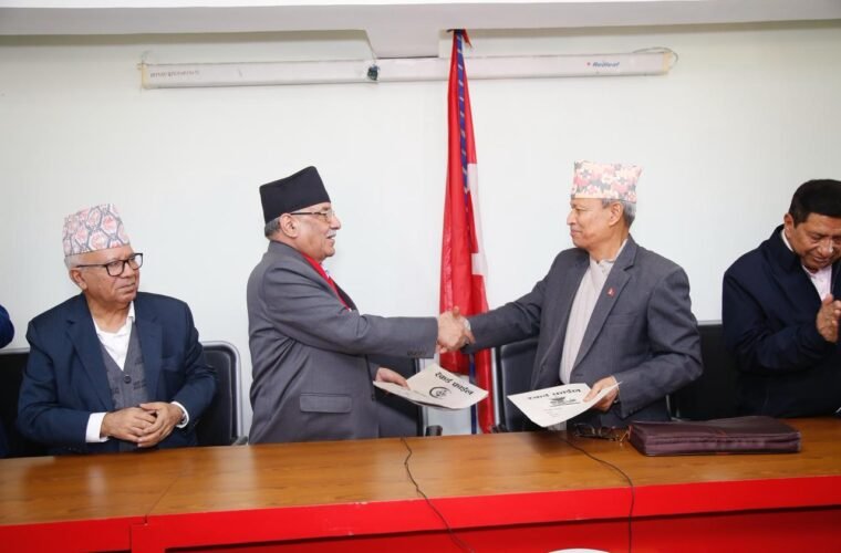 NCP Coordinator Pushpa Kamal Dahal ‘Prachanda’ and Co-convener Madhav Kumar Nepal and Jagaran Abhiyan founder Bhim Rawal have reached a seven-point agreement to unite the two parties today.