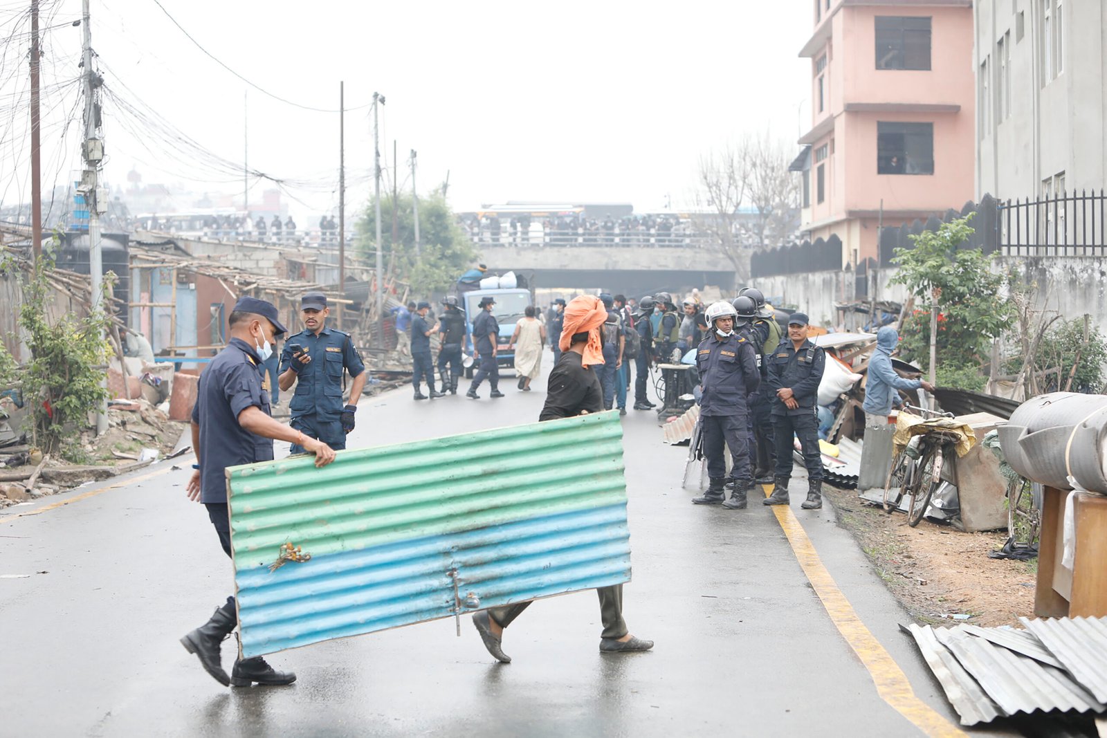 Some persons settling illegally had said they would dismantle their huts till 9:00am. Then, the demolition team including Kathmandu Metropolitan City’s dozers reached the site and began clean up.