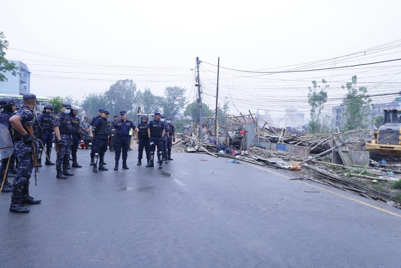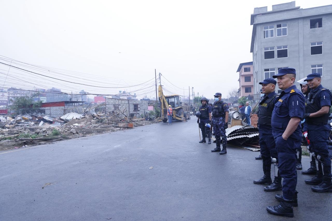 Chief of District Police Premises, Surya Bahadur Khadka, informed that the demolition of illegal structures kicked off with mobilization of 1,300 Nepal Police persons and 600 Armed Police persons from Bhaktapur district.