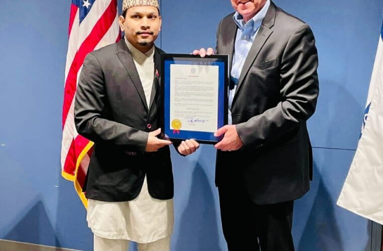 Kathmandu, April 21: An international parkour athlete and multiple Guinness World Records holder Dr Dinesh Sunar (PhD, Sports Science – Honorary) has been honored with a Certificate of Special Congressional Recognition by Thomas R. Suozzi, representing New York’s Third Congressional District.
