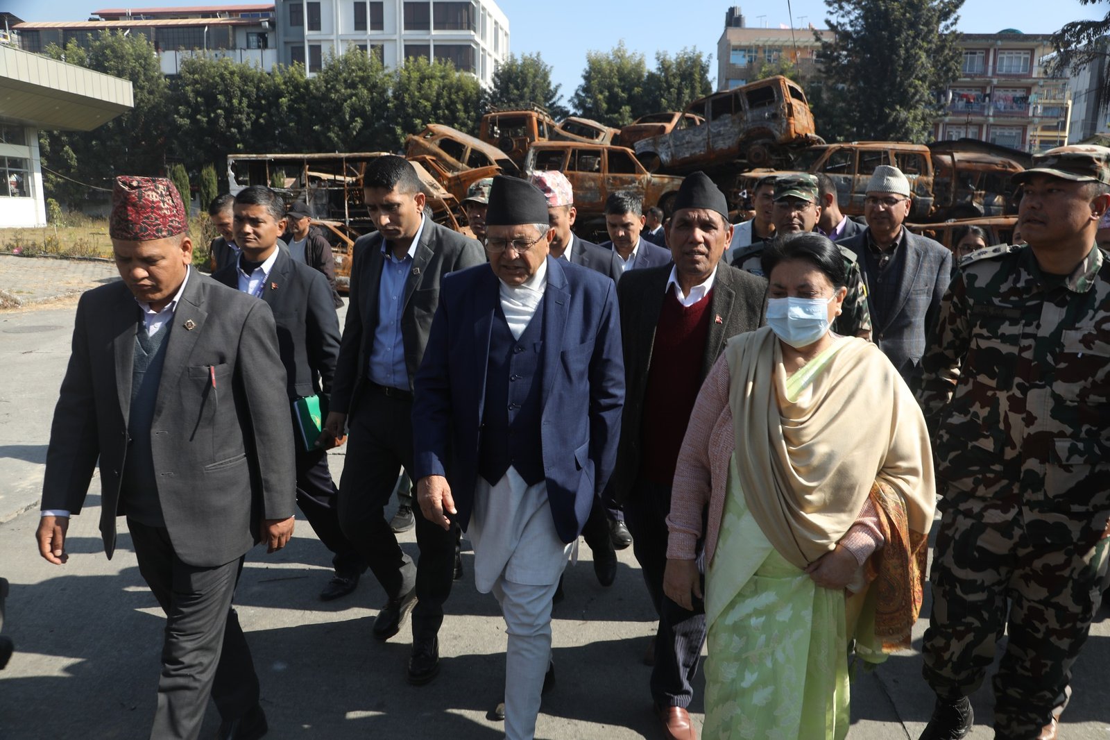 Kathmandu, Dec 11: Former President Bidya Devi Bhandari today observed the Federal Parliament Building that was damaged during the September 8-9 Gen Z movement.
