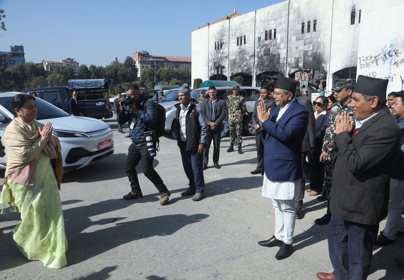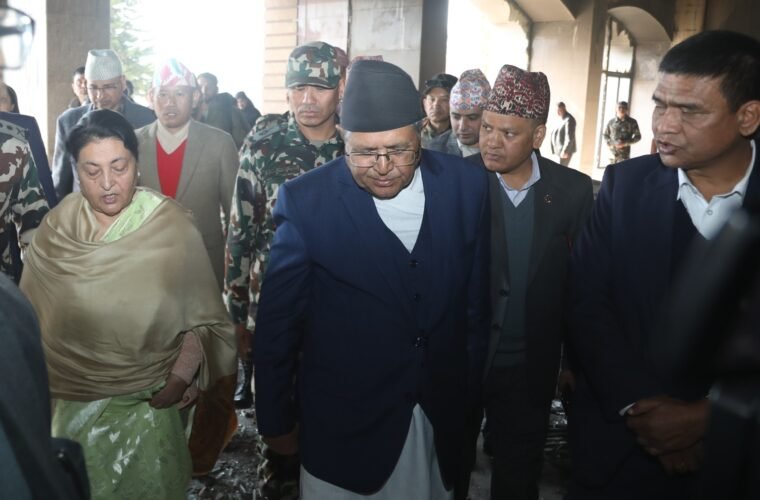 Speaker Devraj Ghimire and National Assembly (NA) Chairperson Narayan Prasad Dahal apprised her of the losses. Talking to media following the inspection, she said she was disheartened to see the condition of the Federal Parliament Building.