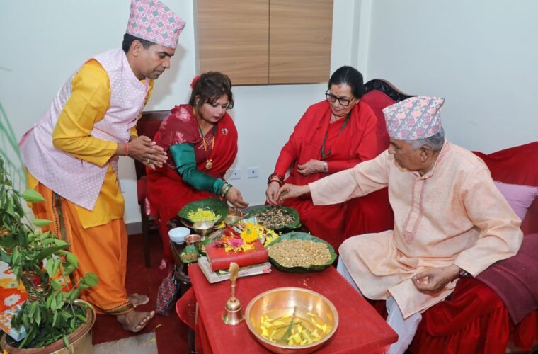 Kathmandu, Oct 3: President Ramchandra Paudel has solemnized the Ghatasthapana rituals along with worship of Goddess Durgadevi in keeping with the Vedic tradition at the Rashtrapati Bhawan, Sheetal Niwas, the President House, on the occasion of Ghatasthapana of the Badadasain festival today.