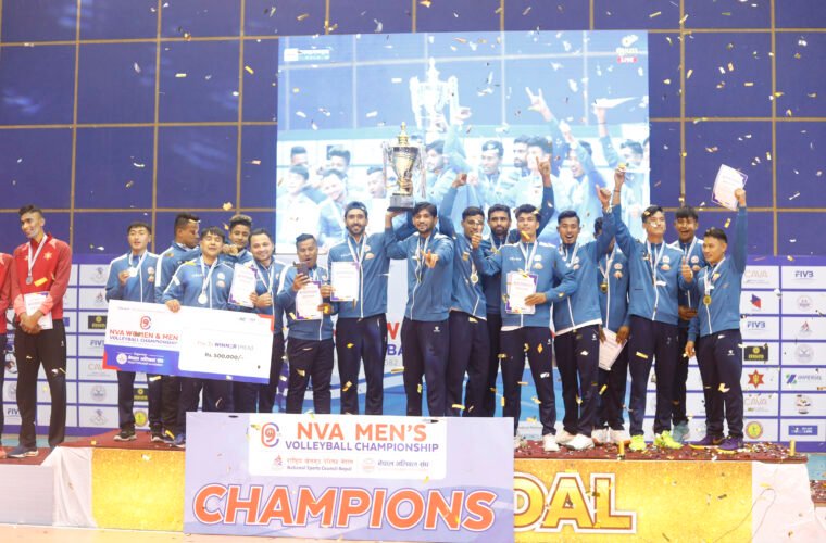 Help Nepal defeated the Army 25–21, 25–21 and 25–21. In the women’s final held today at the same ground, New Diamond Academy defeated the departmental team Nepal Police Club, 3–0, in straight sets to win the women’s title.