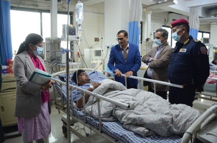 Minister Aryal visited the Nepal National Hospital in Kalanki, Kathmandu and National Trauma Centre in Kathmandu today and acquired information about the survivors of the road accident and their treatment.