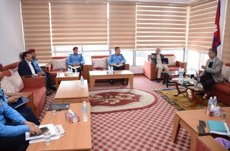 Kathmandu, March 22: Home Minister Om Prakash Aryal has held a discussion on security arrangement in Singha Durbar in view of the upcoming oath-taking ceremony of the newly elected members of the House of Representatives (HoR).