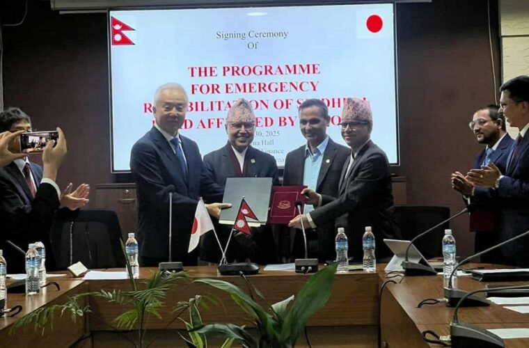 Ambassador of Japan to Nepal, Maeda Toru, and Secretary of the Ministry of Finance, Ghanshyam Upadhyaya, signed the Exchange of Notes for the grant, according to a press release issued by the Embassy of Japan.