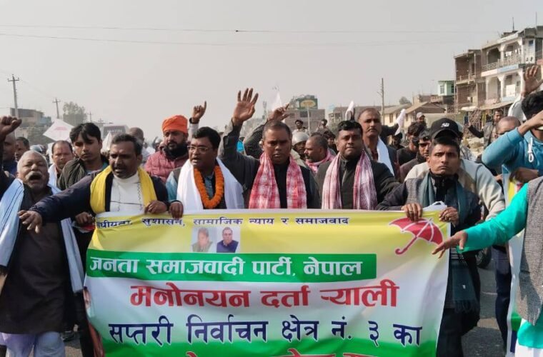 Rajbiraj (Saptari), Jan 20: Chairperson of the Janata Samajbadi Party Nepal and former Deputy Prime Minister, Upendra Yadav, registered his nomination on Tuesday for the upcoming March 5’s election to House of Representatives (HoR) from Saptari constituency 3.