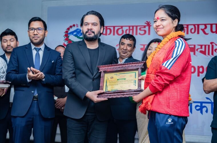 On the occasion held at the Metropolis office, Mayor Balen Shah presented a letter of appreciation and while Deputy Mayor Sunita Dangol handed over a check of the cash prize to the athlete.