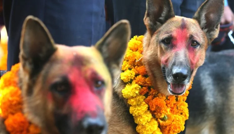 People worship dogs, garland it and offer delicious food today.