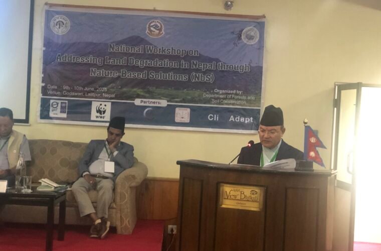 Kathmandu, June 9: Forest and Environment Minister Ain Bahadur Shahi Thakuri said that land erosion has created serious problems for livelihoods. In the inaugural session of the national workshop titled ‘Addressing Land Erosion through Nature-Based Solutions in Nepal’ organized by the Department of Forest and Soil Conservation under the ministry in Godawari, Lalitpur, Minister Shahi highlighted that land degradation is a serious challenge worldwide.