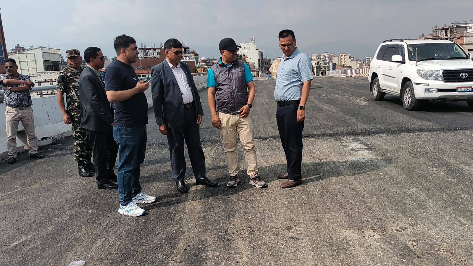Minister for Physical Infrastructure and Transport, Devendra Dahal, and a team of the Department of Roads made an inspection visit to the site today at the flyover construction area at Gwarko, Lalitpur.