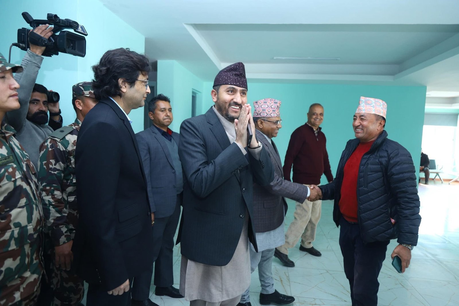 Kathmandu, Dec 23: A team comprising Minister for Law, Justice and Parliamentary Affairs, Anil Kumar Sinha, Minister for Communications and Information Technology, Jagadish Kharel, and Political Advisor to the Prime Minister, Ajay Bhadra Khanal, today inspected the damaged party headquarters of the UML at Chyasal in Lalitpur.