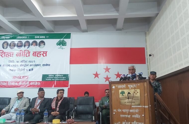 Addressing the ‘education policy debate’ organized by the NC central education department here today, party President Deuba opined that Nepal should be developed as a centre of excellence for higher education. “Education and health are our essential needs. So, from school to university, quality education is a must,” Deuba underlined.
